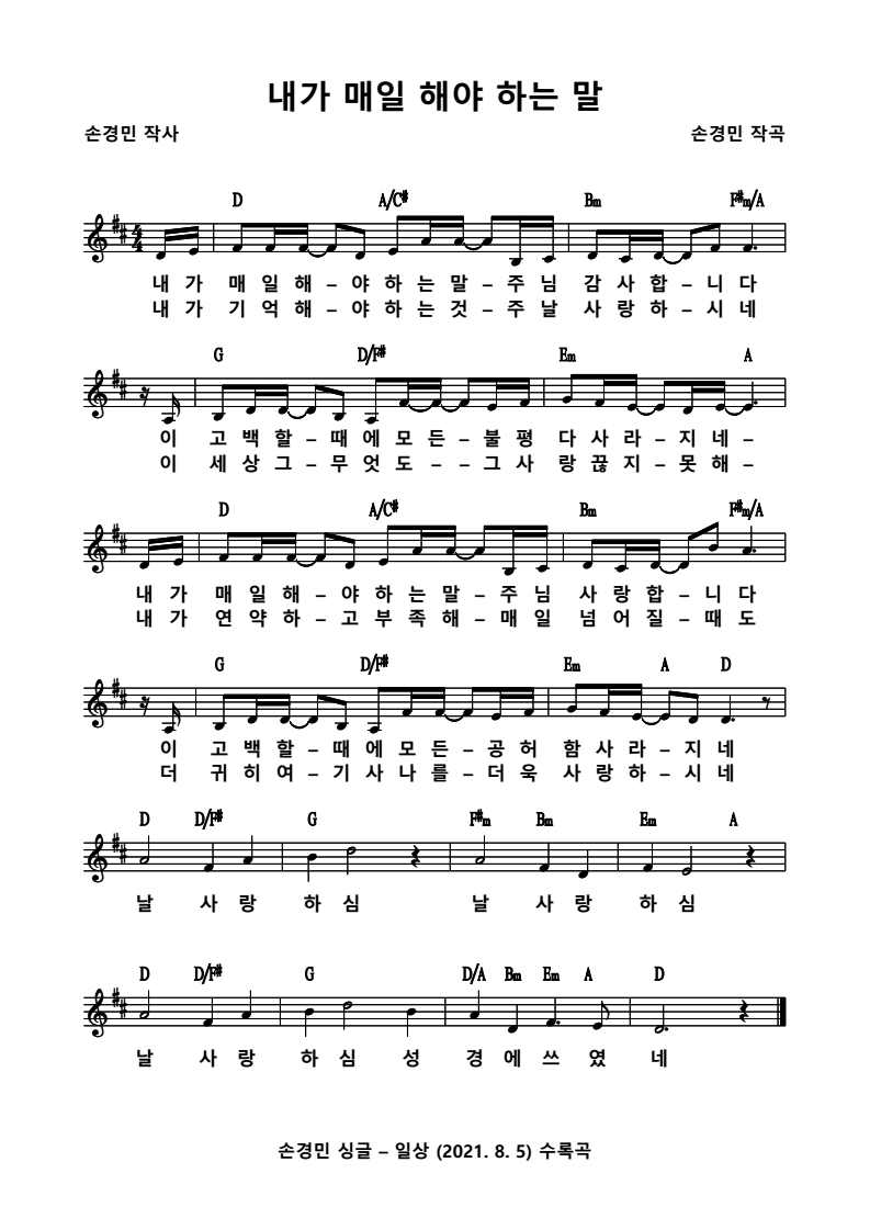 [찬양가사] 내가매일해야하는말 [손경민 작사, 손경민 작곡]
