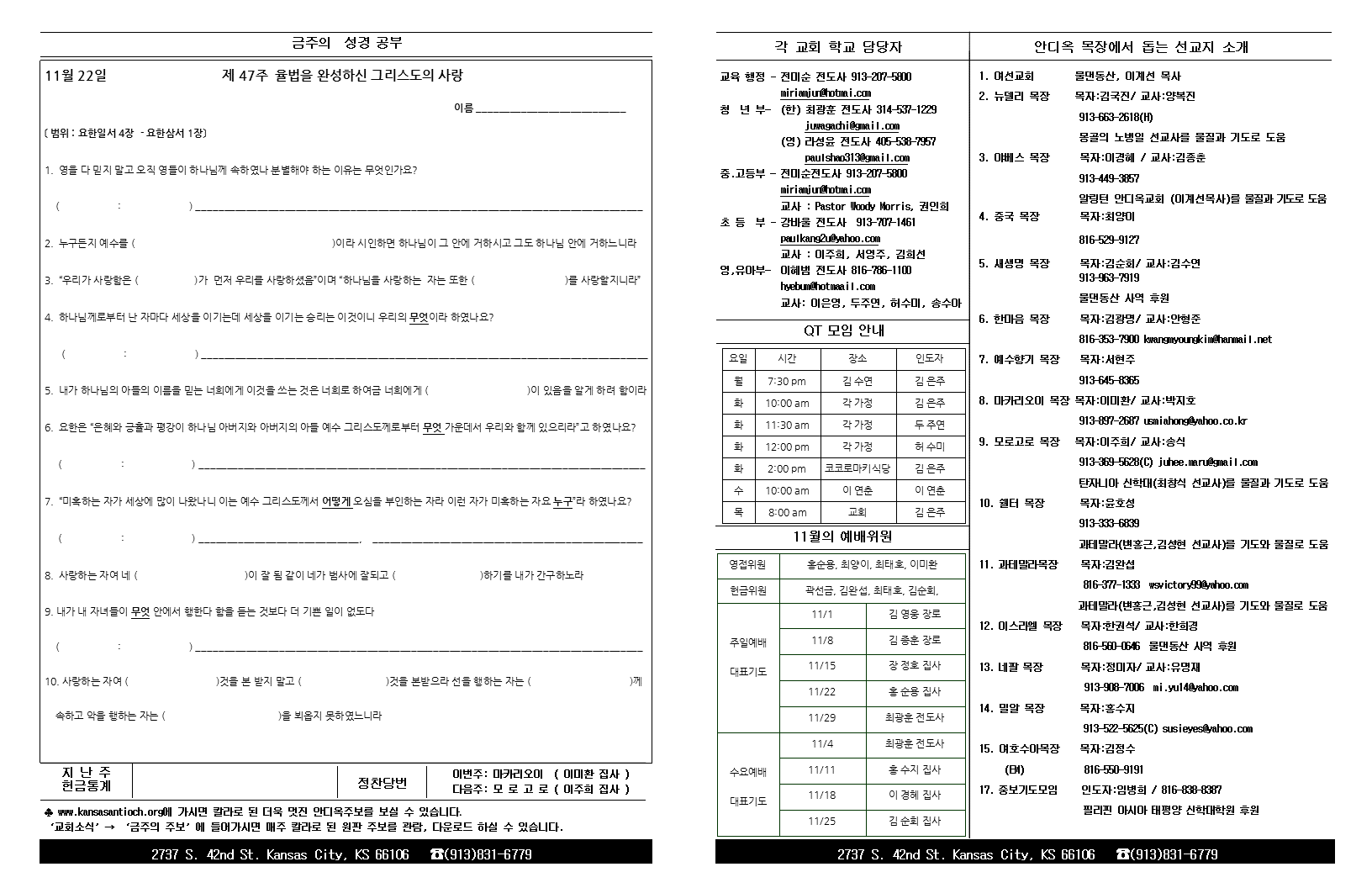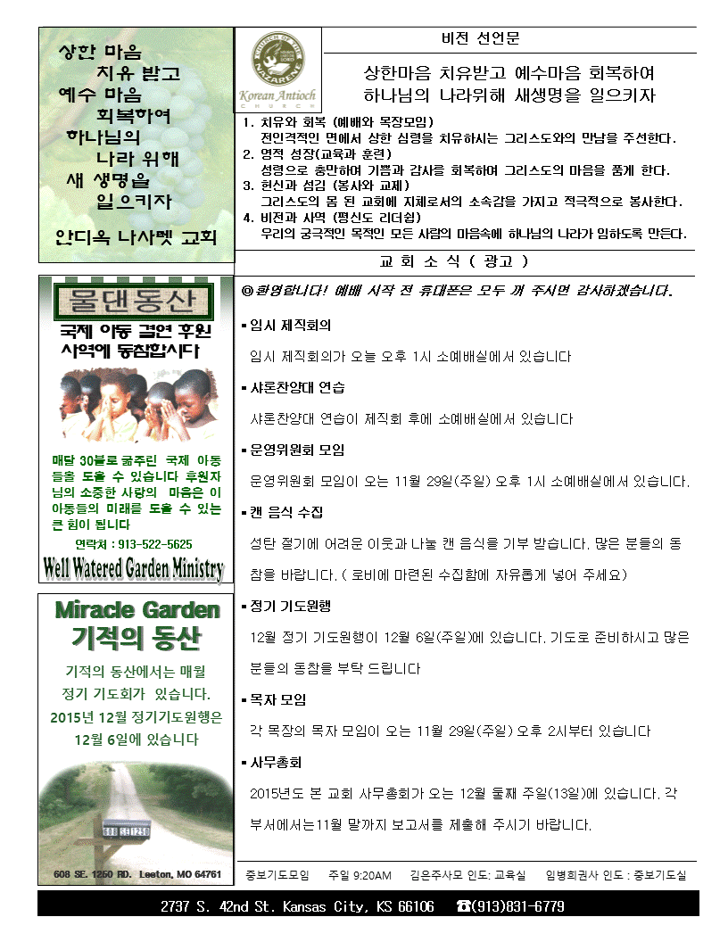 2015년 11월 22일 안디옥주보입니다