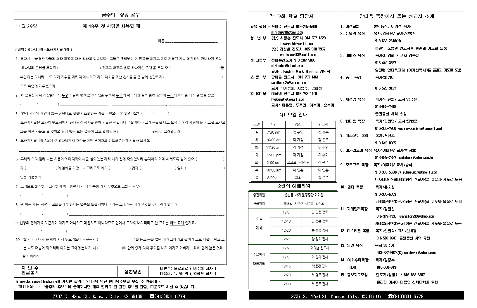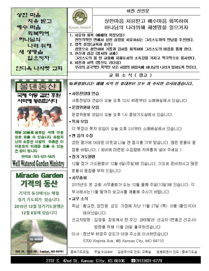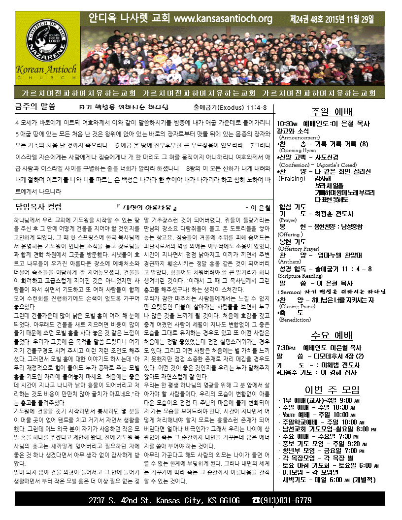 2015년 11월 29일 안디옥주보입니다