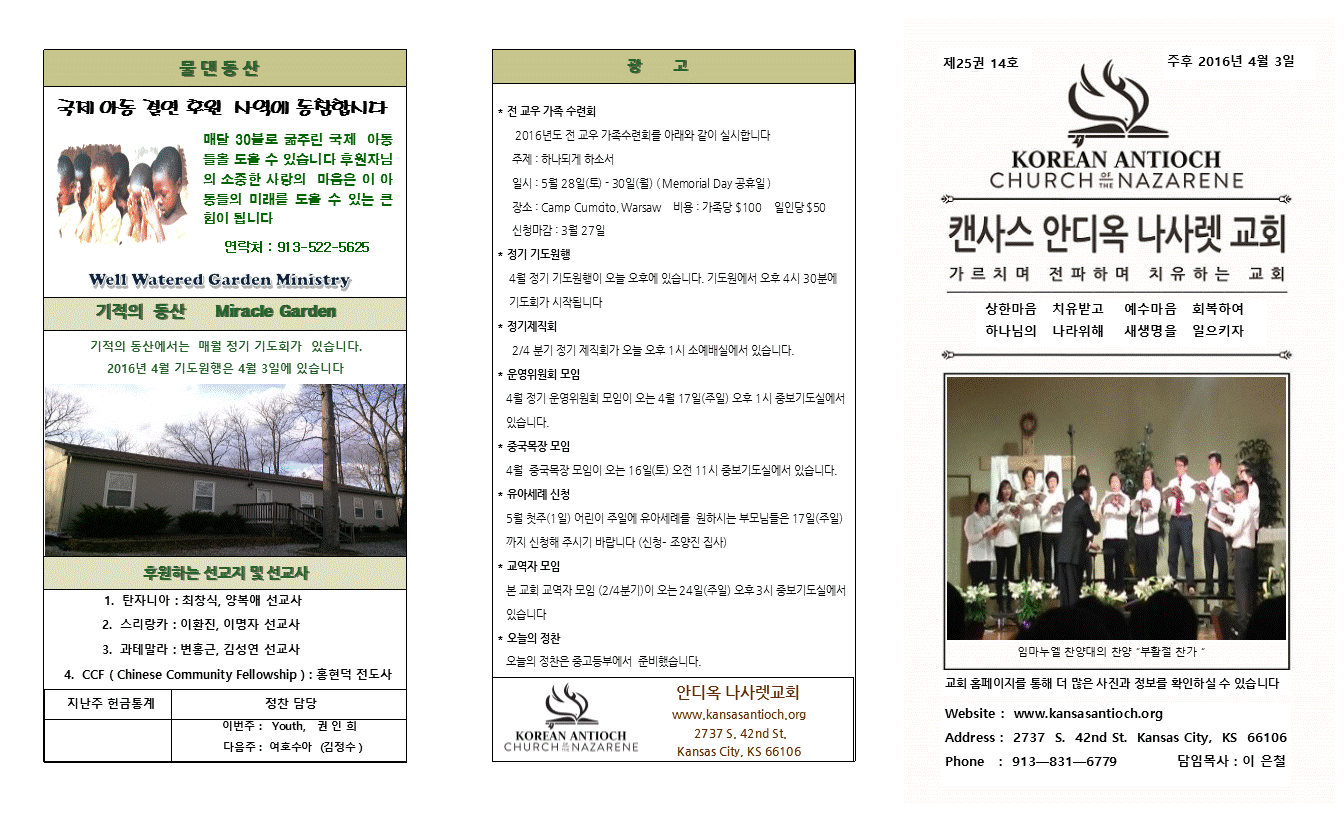 2016년 4월 3일 안디옥주보입니다