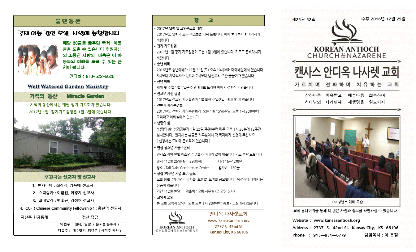 2016년 12월 25일 안디옥주보입니다