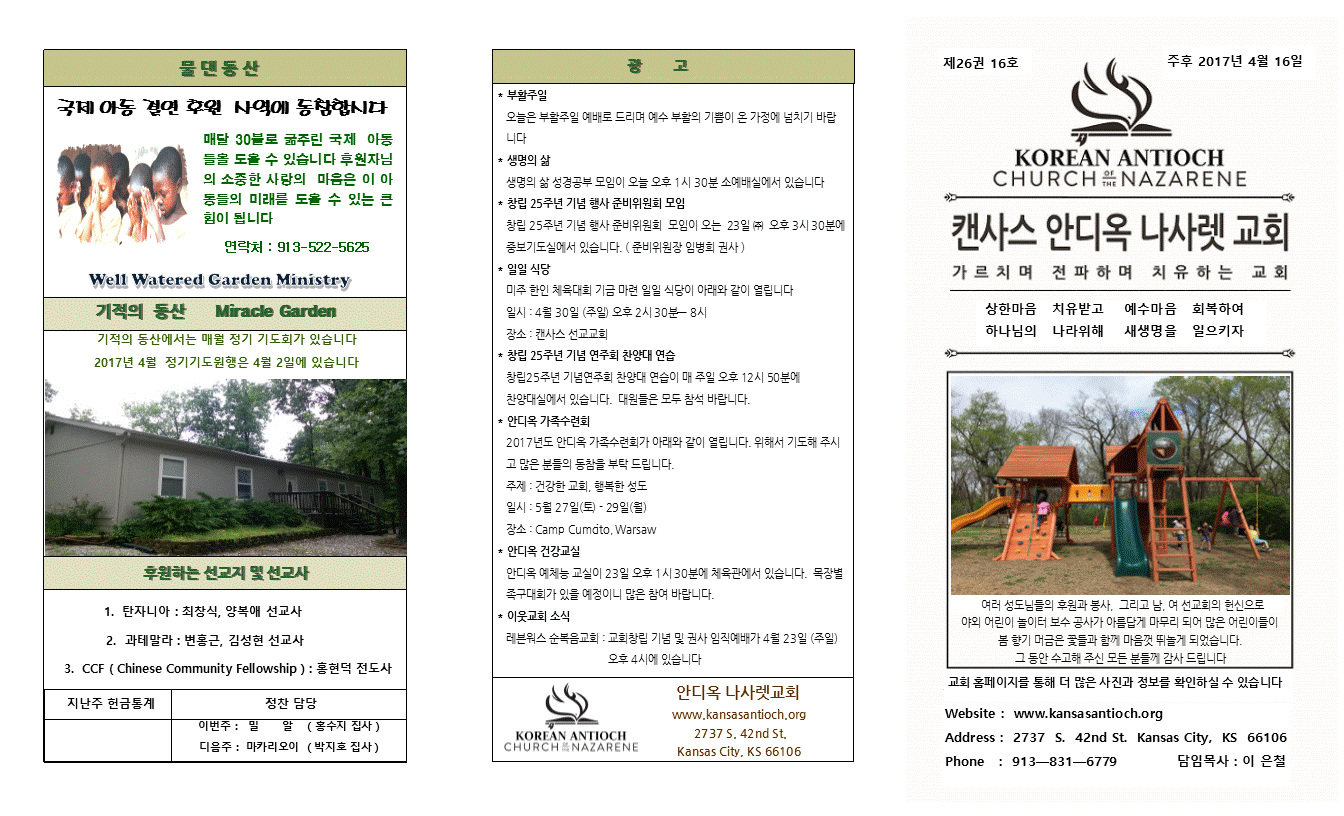 2017년 4월 16일 안디옥주보입니다