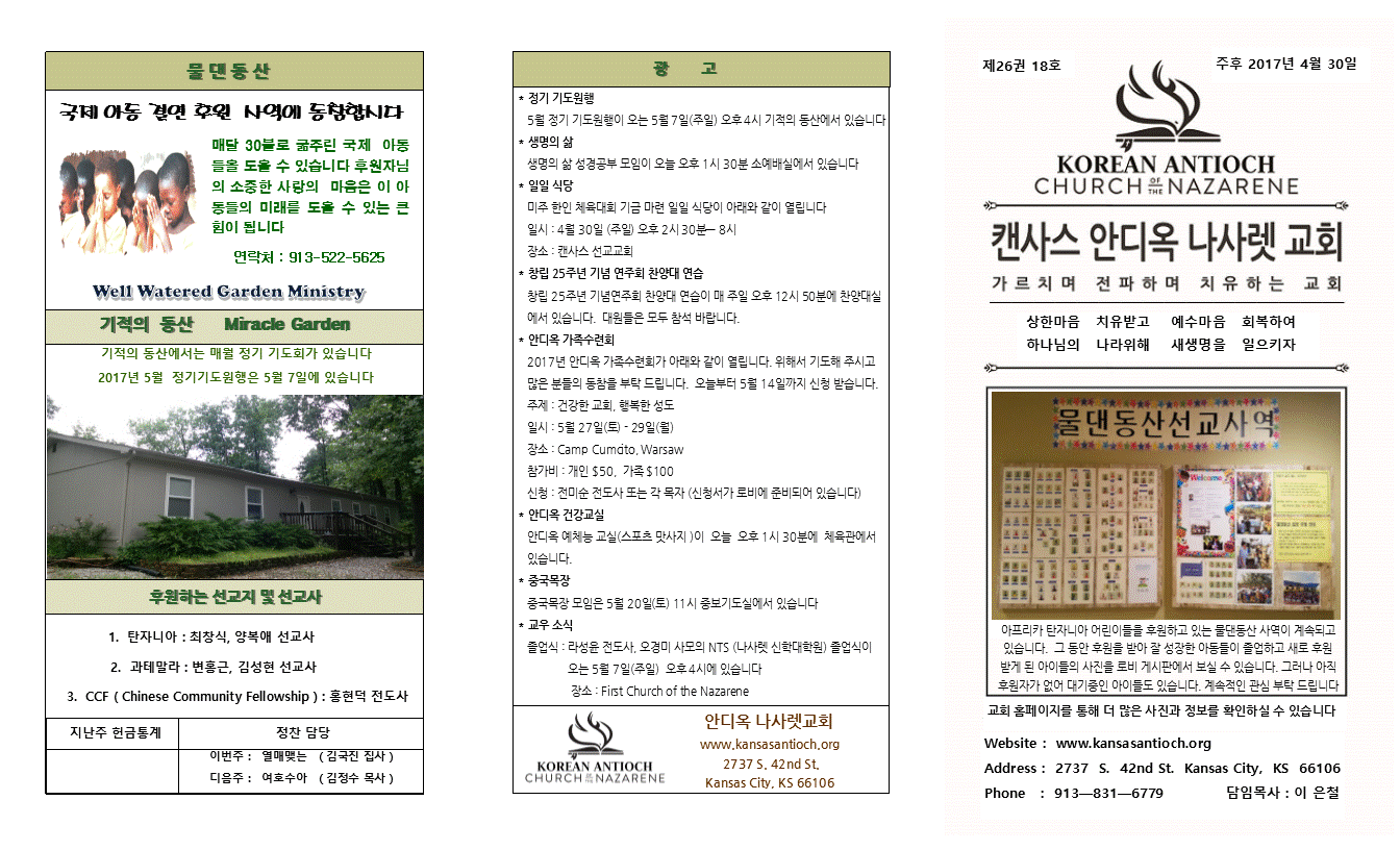 2017년 4월 30일 안디옥주보입니다