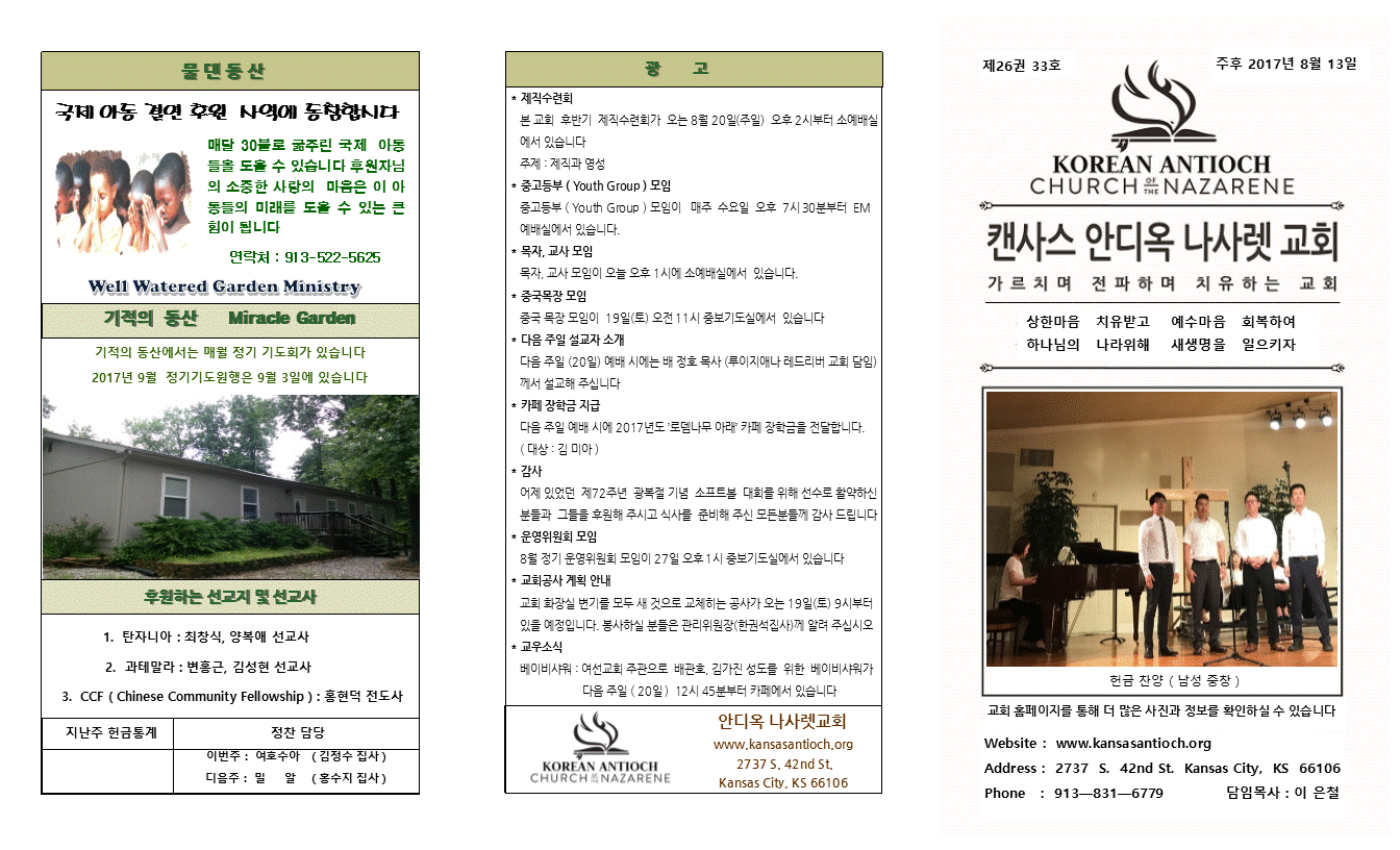 2017년 8월 13일 안디옥주보입니다