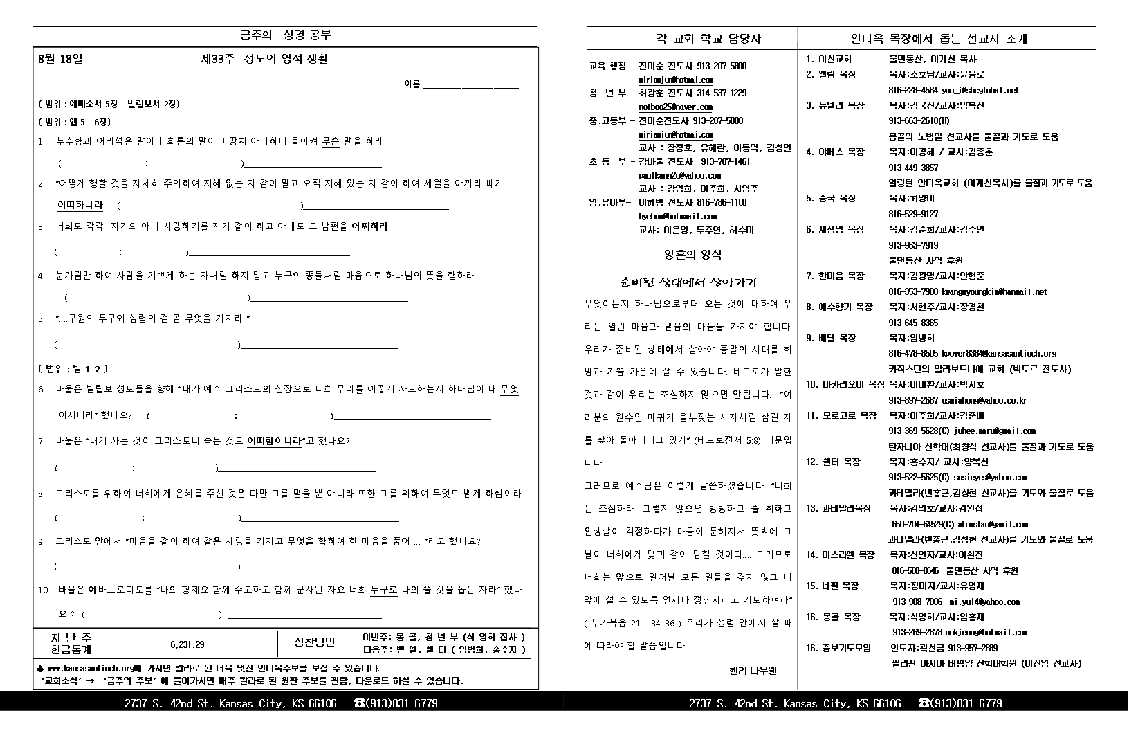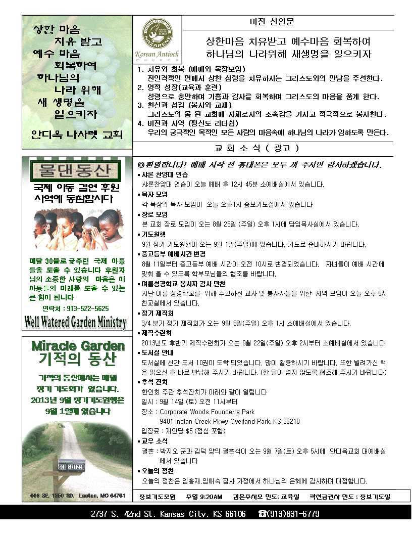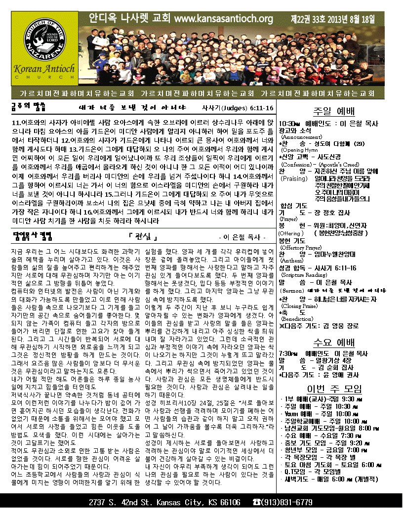 2013년 8월 18일 안디옥 주보입니다.