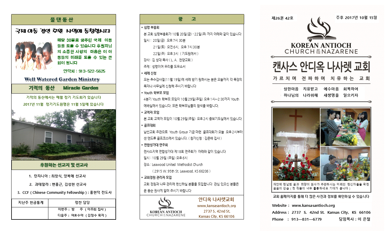 2017년 10월 15일 안디옥주보입니다