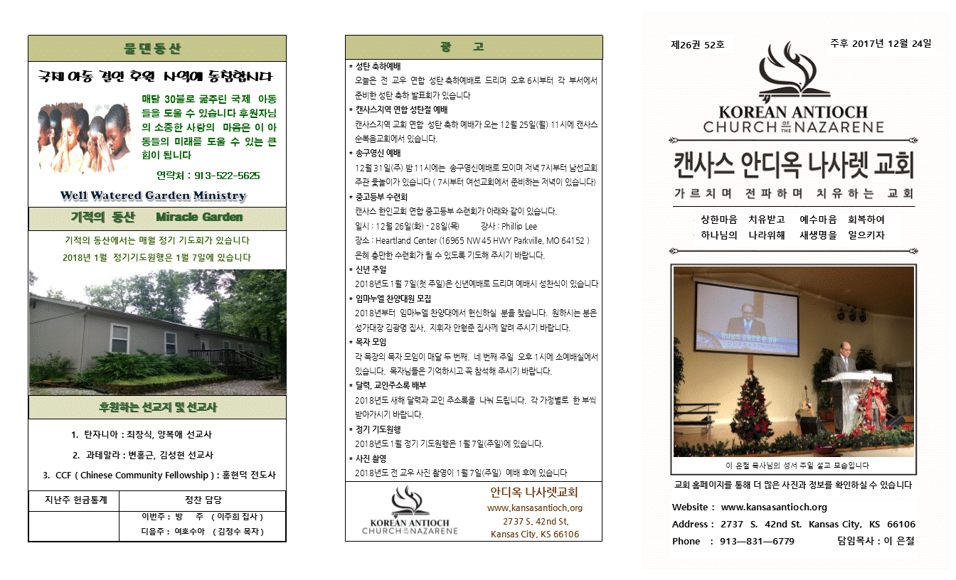 2017년 12월 24일 안디옥주보입니다