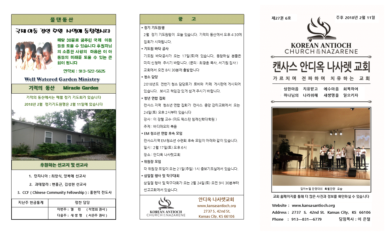 2018년 2월 11일 안디옥 주보입니다