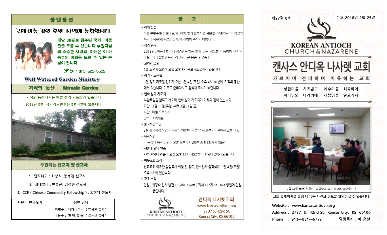 2018년 2월 25일 안디옥주보입니다