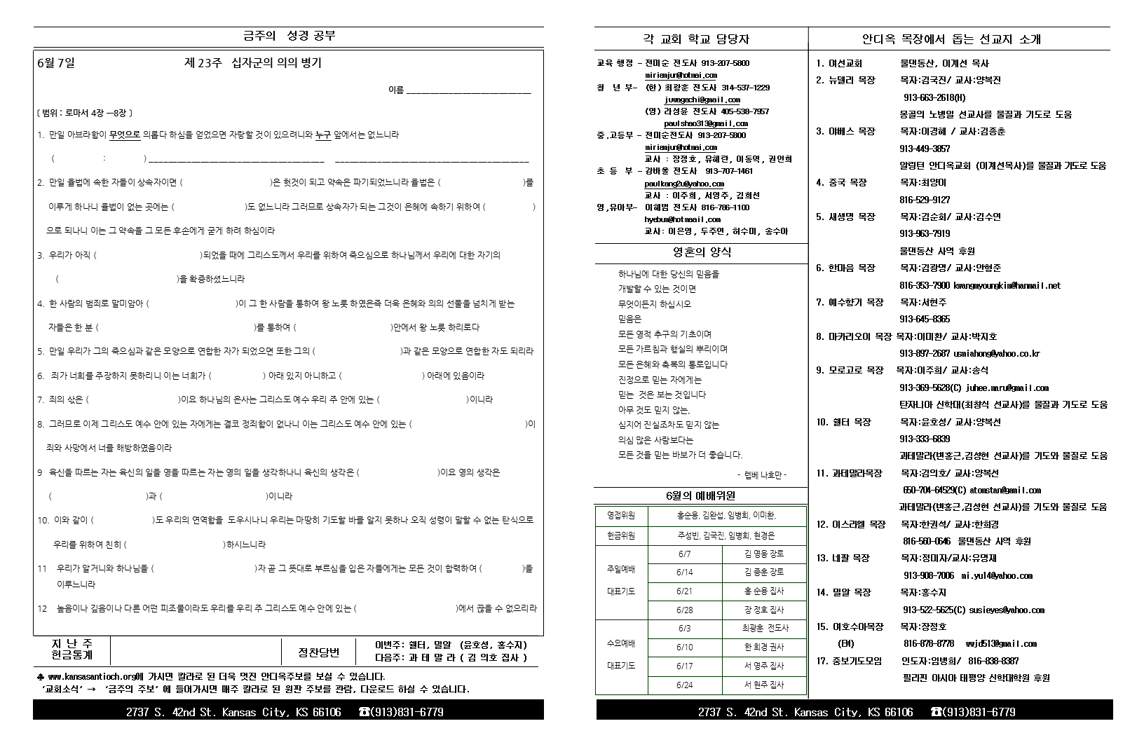 2015년 6월 7일 안디옥주보입니다 2015년 6월 7일 안디옥주보입니다