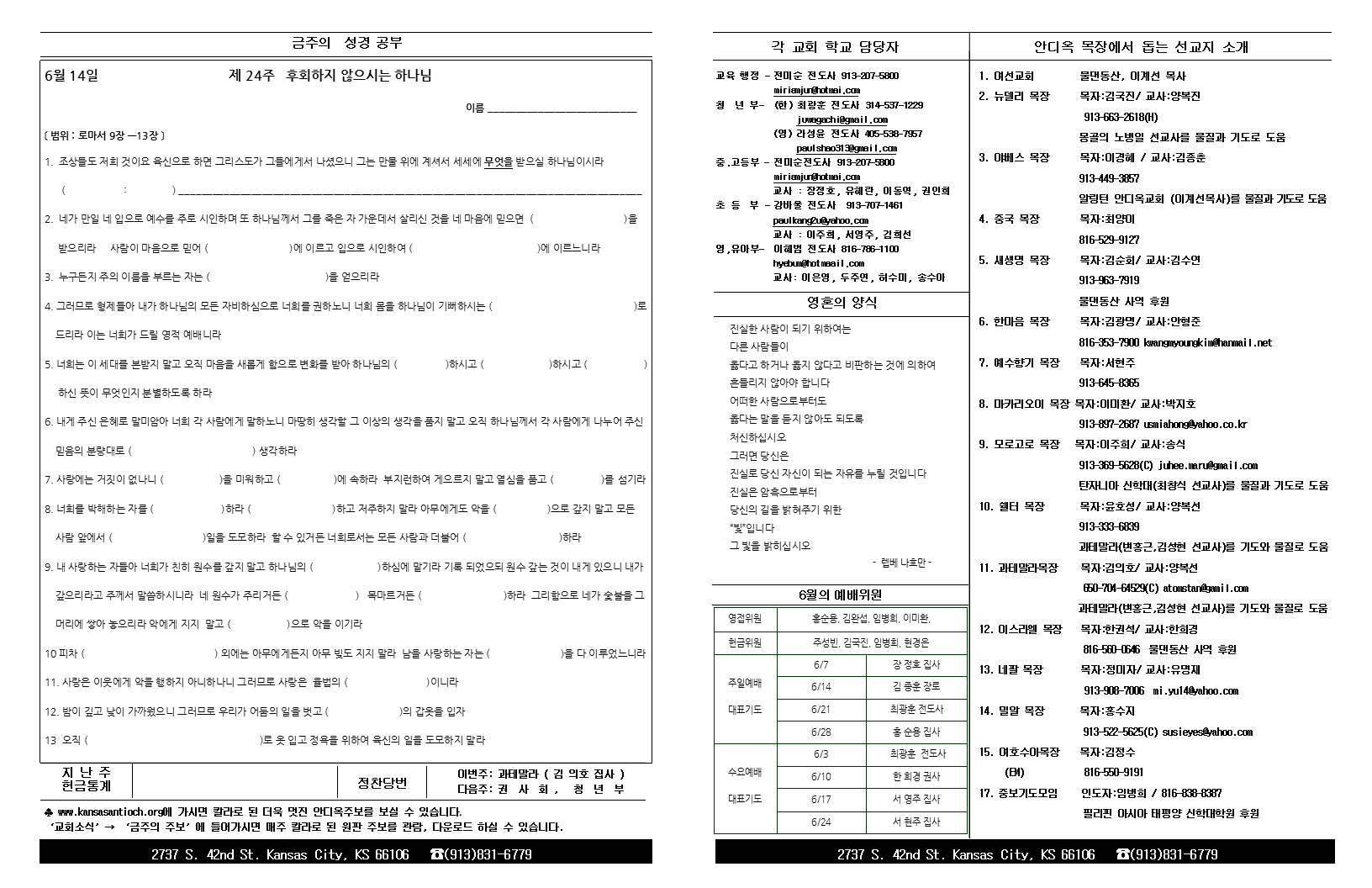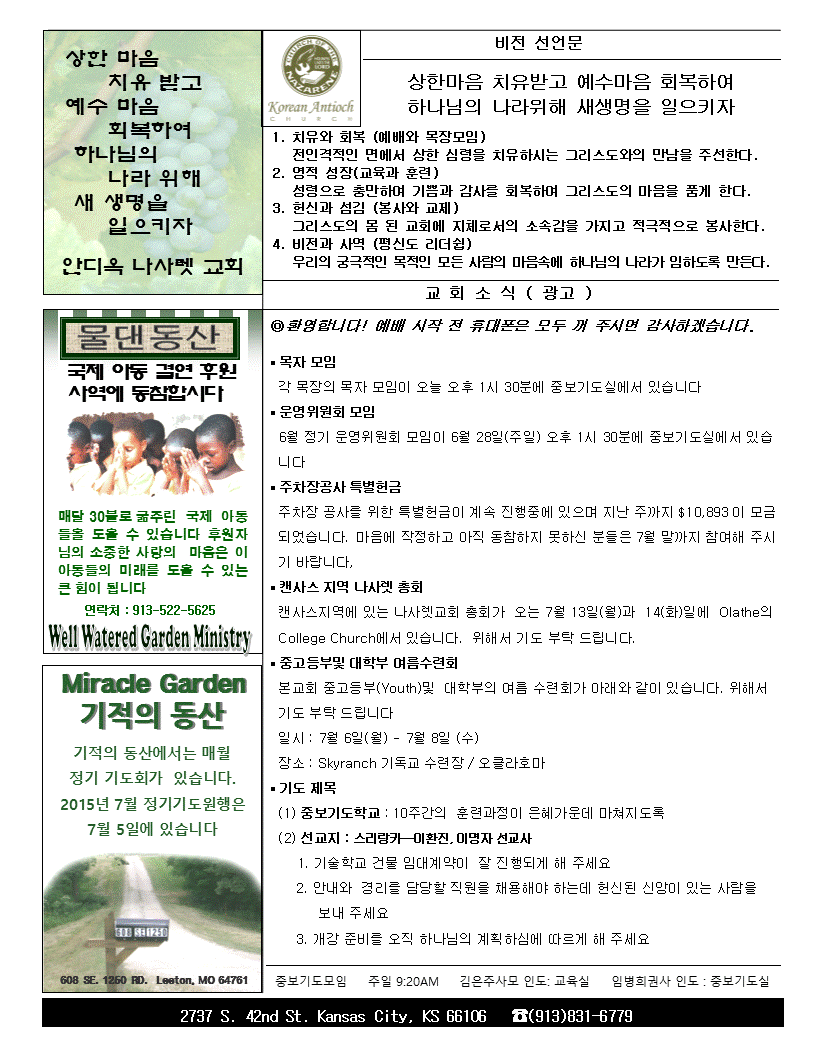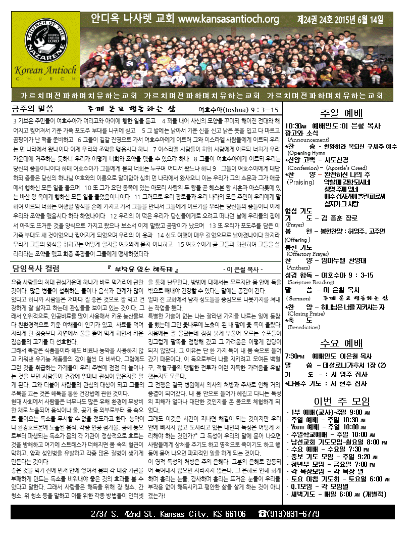 2015년 6월 14일 안디옥주보입니다