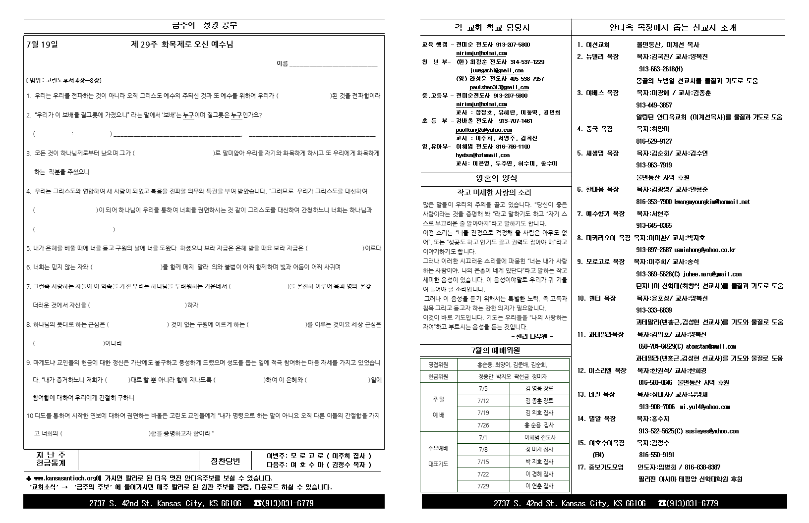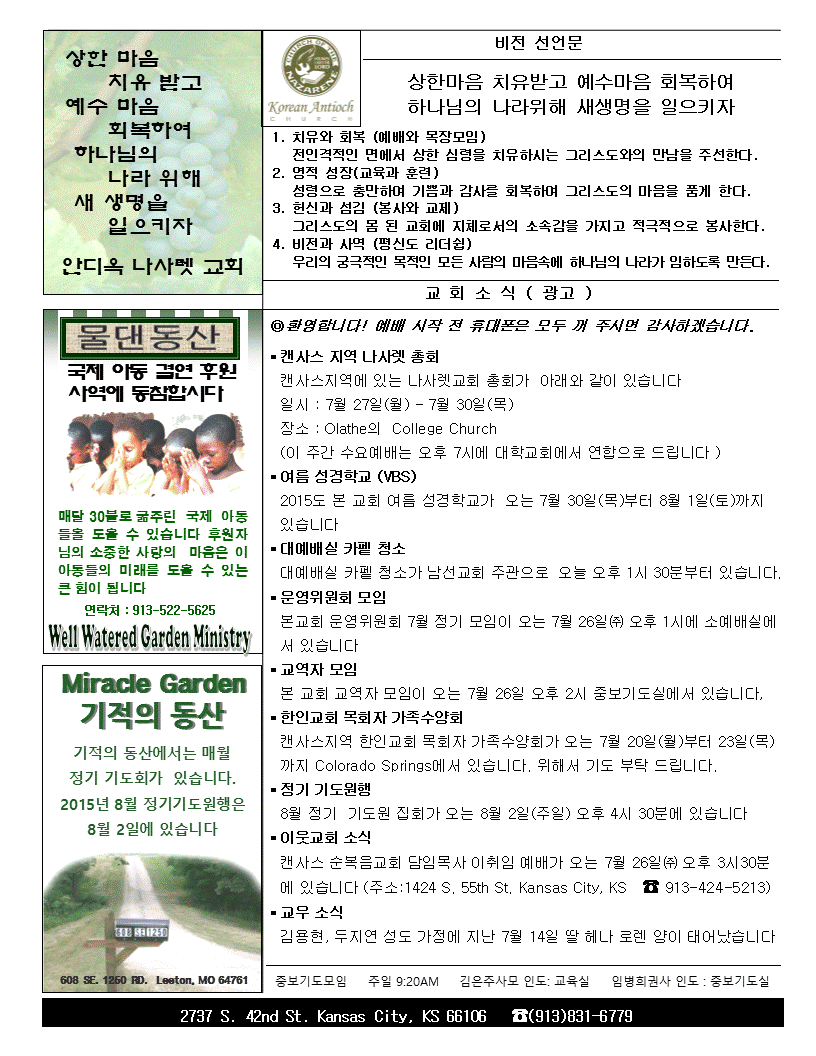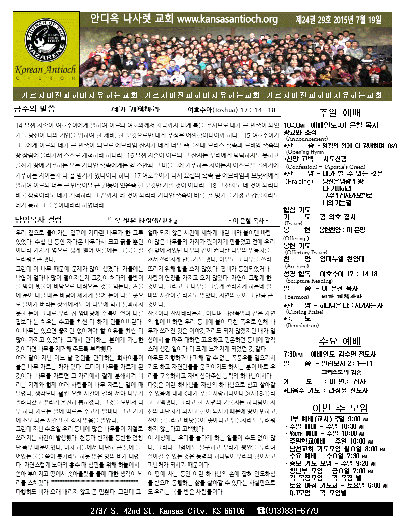 2015년 7월 19일 안디옥 주보입니다