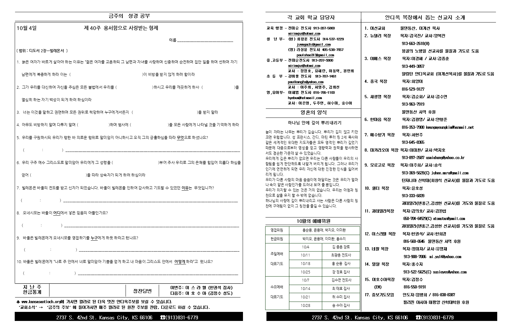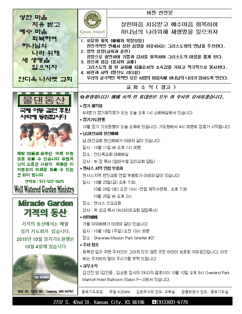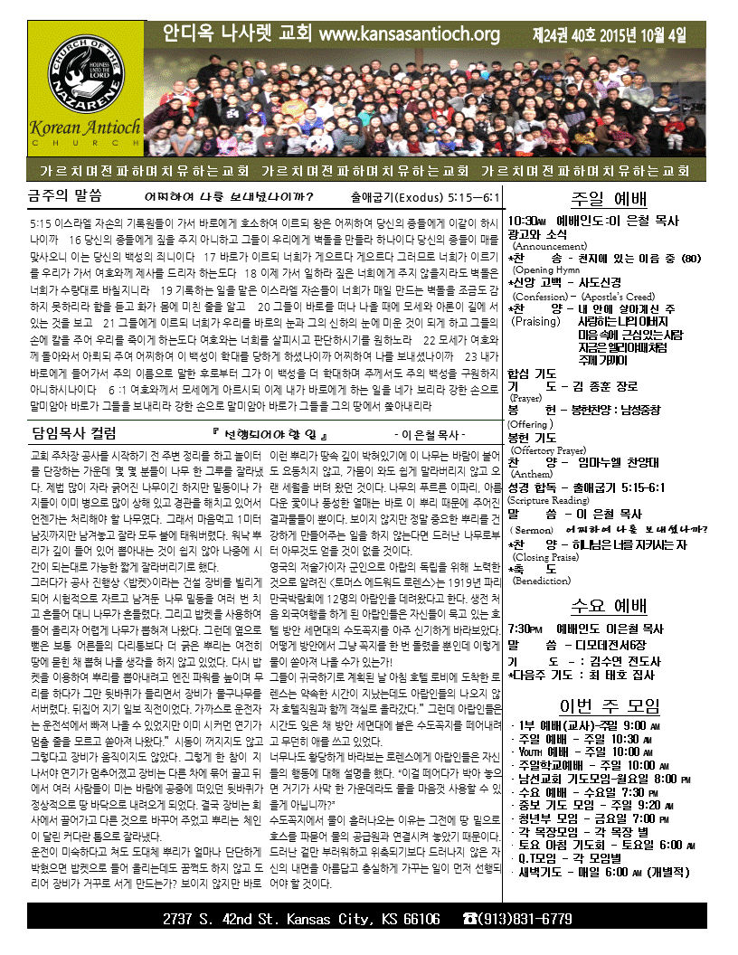 2015년 10월 4일 안디옥주보입니다