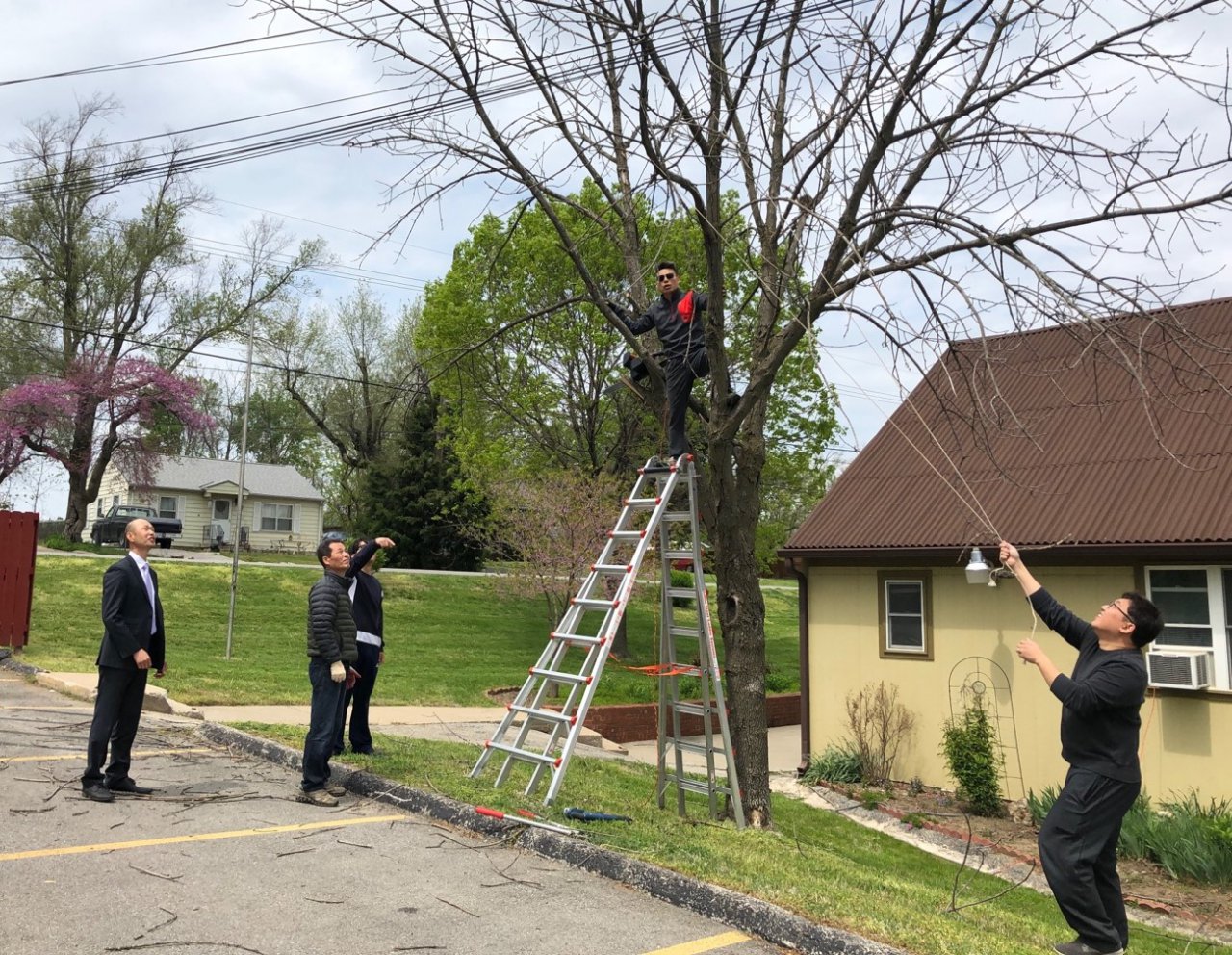 뒷마당 나무가 수년간 자라 전깃줄에 닿아 위험해져서 남선교회 회원들이 회장 김광명 집사님의 지휘아래 나무 가지치기를 하였습니다.. ( 전기톱 들고 나무에 올라 갔네요 ) 지난 주에는 체육관 바닥을 수리하교, 부활절을 앞두고 봄철 대청소등