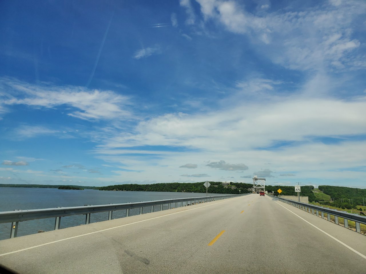 푸른 하늘과 시원한 호수를 통과 합니다.
